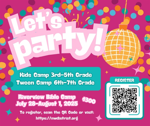Kids and Tweens Camp for grades 3-6 is at Riverview Camp, July 28-August 1, 2024. We have scholarships available at the church – email Jayci if you need information for scholarships at office@pomnaz.org.